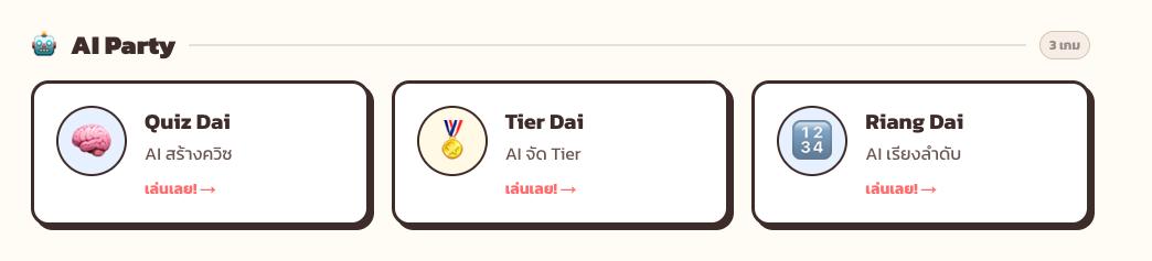 รู้จัก 3 เกม AI Party ฟรีบน LenLearn ได้แก่ Quiz Dai ควิซ AI, Tier Dai จัด Tier List, และ Ai Wad ให้ AI วาดรูป เล่นได้ทันทีปี 2026