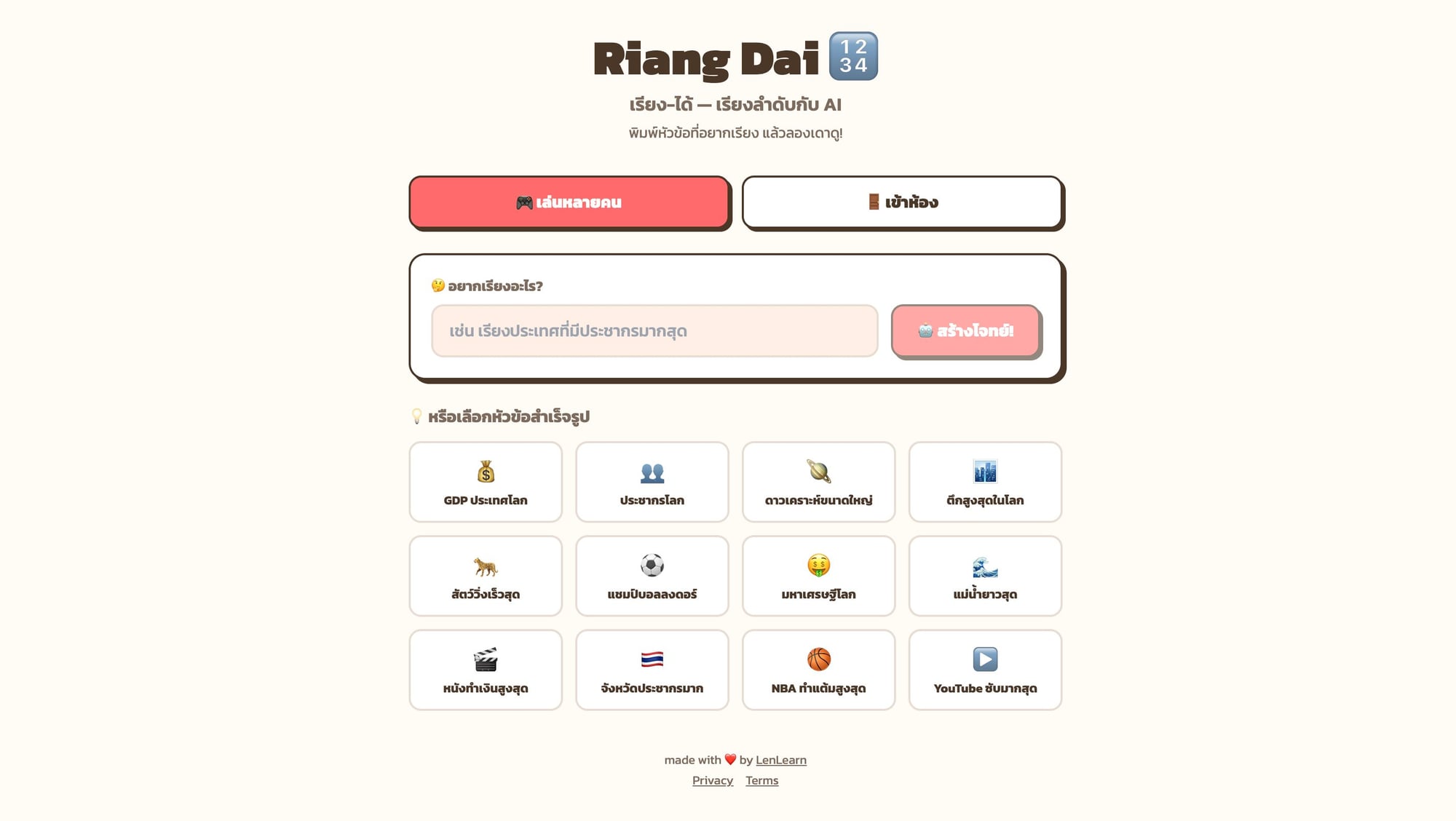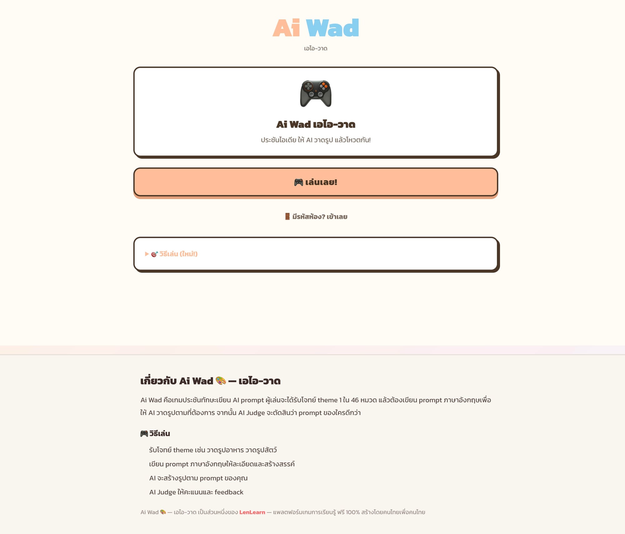 AI สร้างเกมออนไลน์ ฟรี 2026 — Quiz Dai, Tier Dai และ Ai Wad บน LenLearn