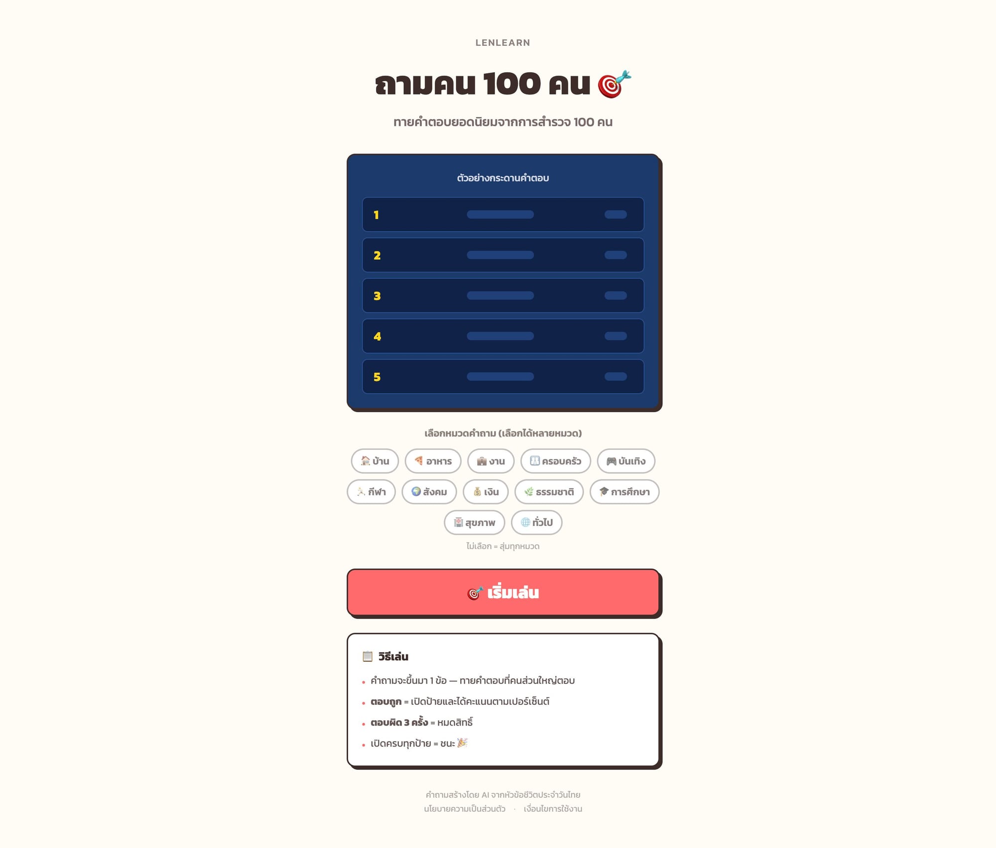 Family Feud ภาษาไทย เล่นฟรีออนไลน์ — ถามคน 100 คน