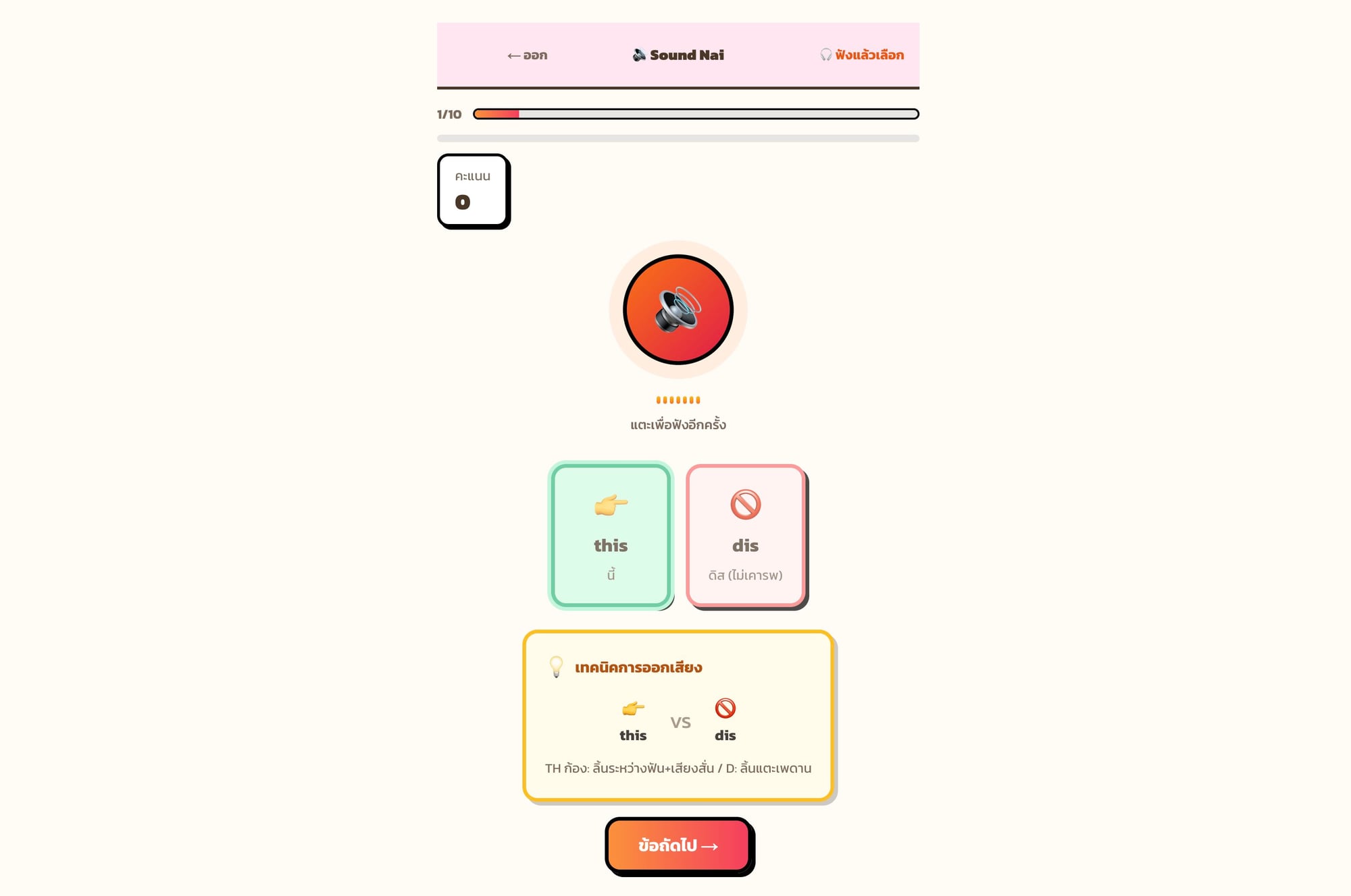 เกมฝึกฟังเสียงภาษาอังกฤษแบบ Minimal Pairs 152 คู่เสียง 14 กลุ่มเสียง ช่วยคนไทยแยกเสียงที่มักสับสน เช่น ship/sheep, bat/bet ฝึกการออกเสียงและการฟังอย่างมีประสิทธิภาพ