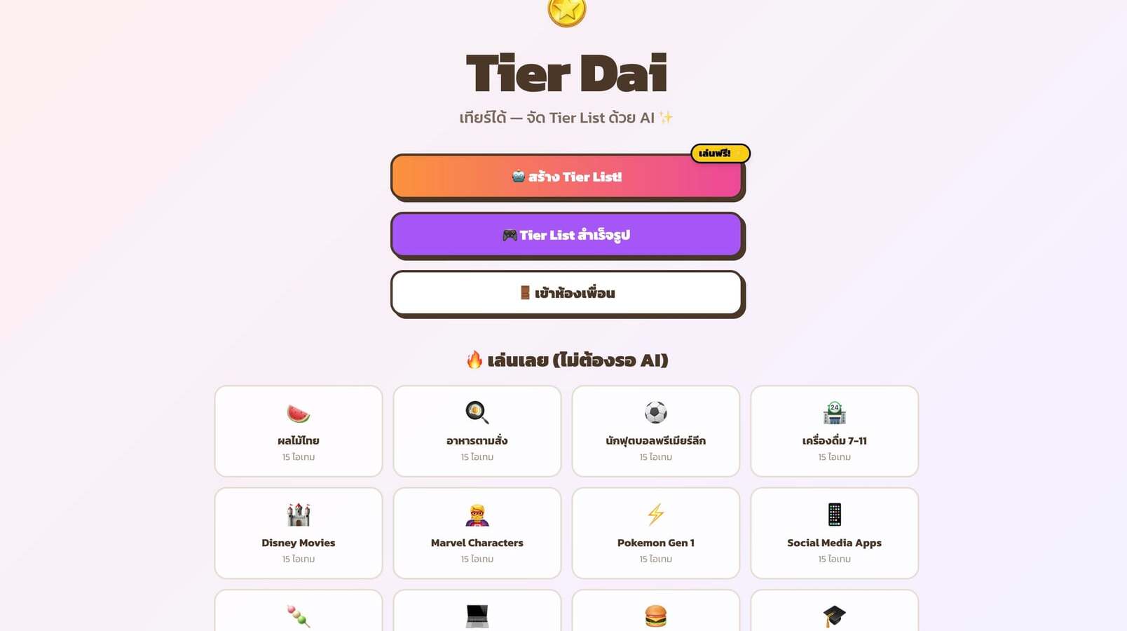 เกมจัดอันดับ Tier List ออนไลน์ ฟรี 2026 — Tier Dai & Riang Dai