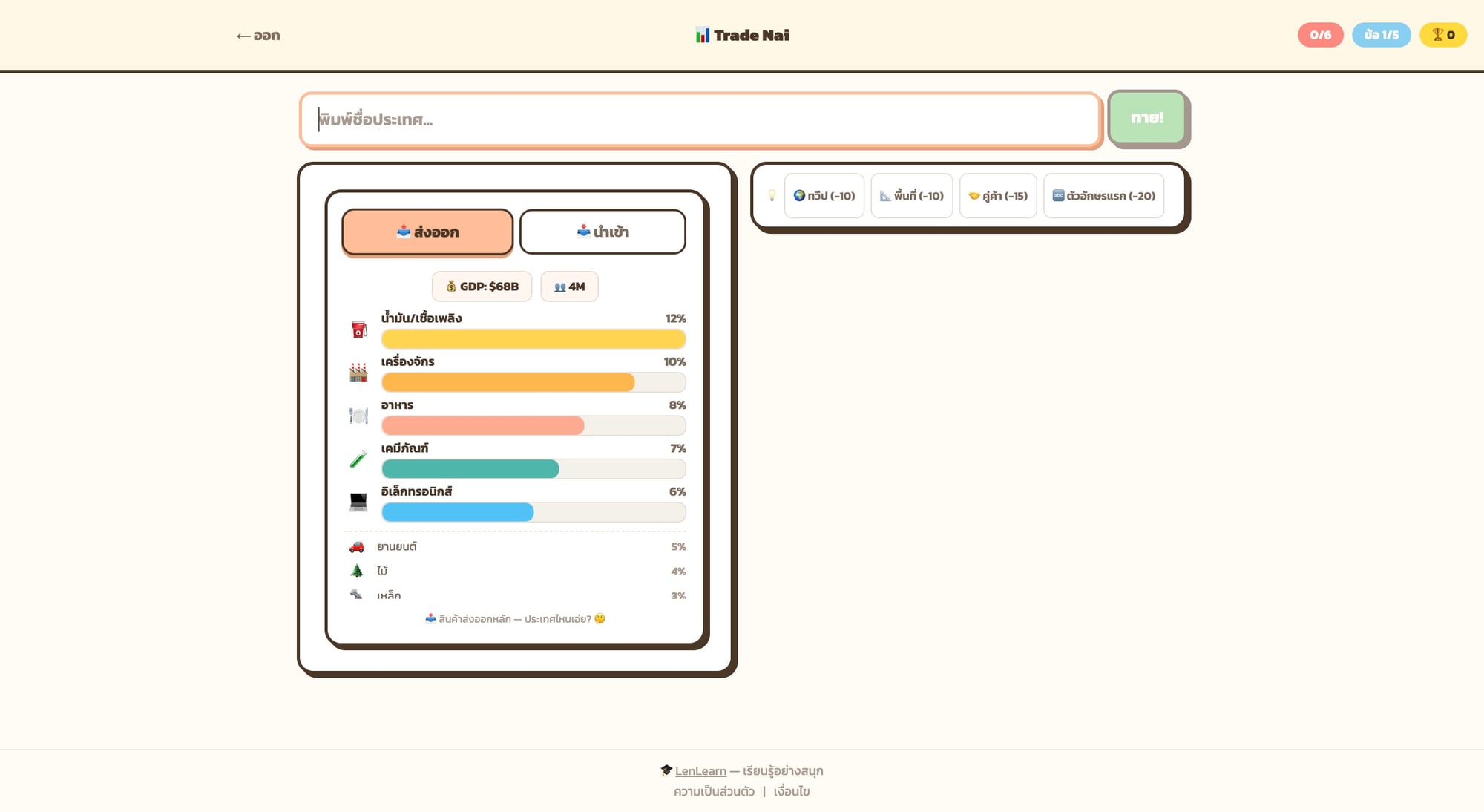 เล่น Trade Nai เกมทายประเทศจากข้อมูล GDP สินค้าส่งออก และเศรษฐกิจ 172 ประเทศ เรียนรู้เศรษฐกิจโลกผ่านเกมอย่างสนุกสนาน