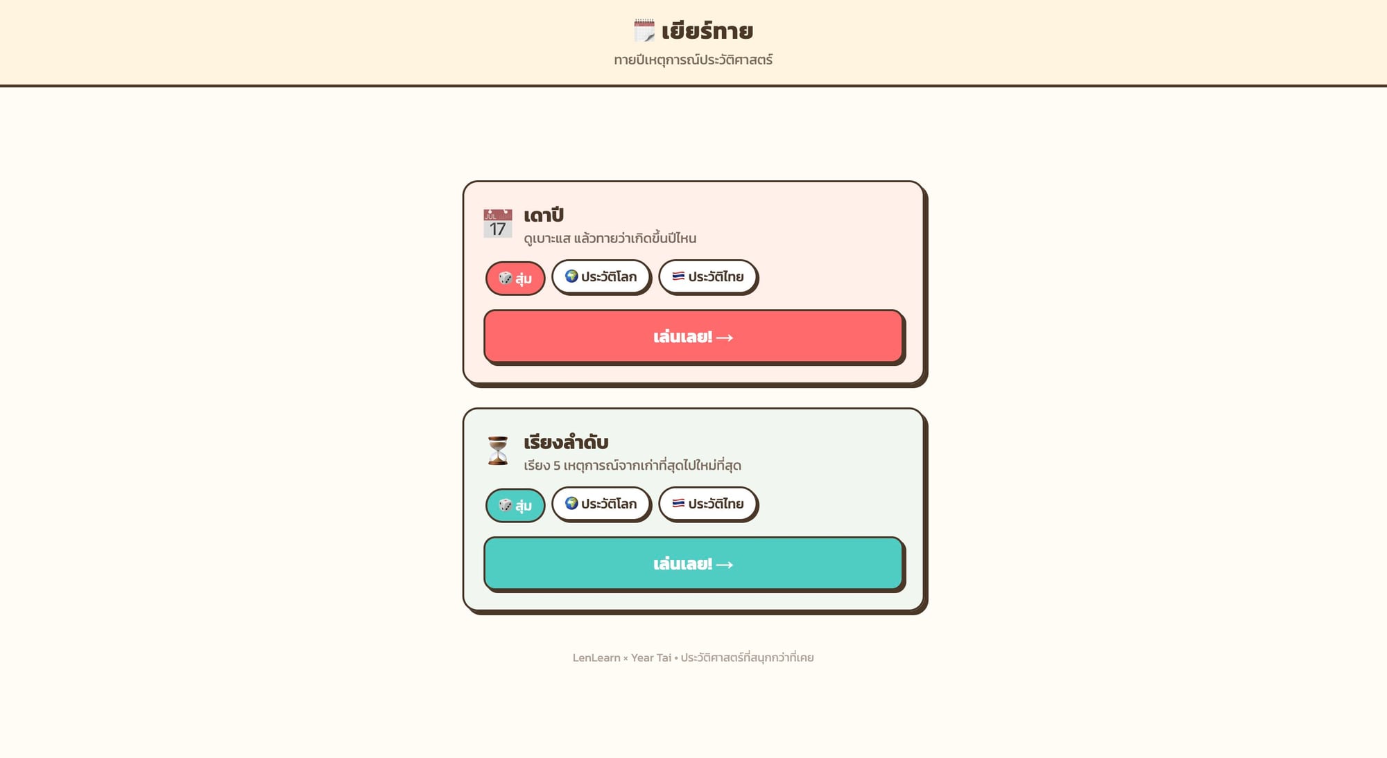 Year Tai — เดาปีเหตุการณ์ประวัติศาสตร์ เรียนรู้ไทม์ไลน์โลก